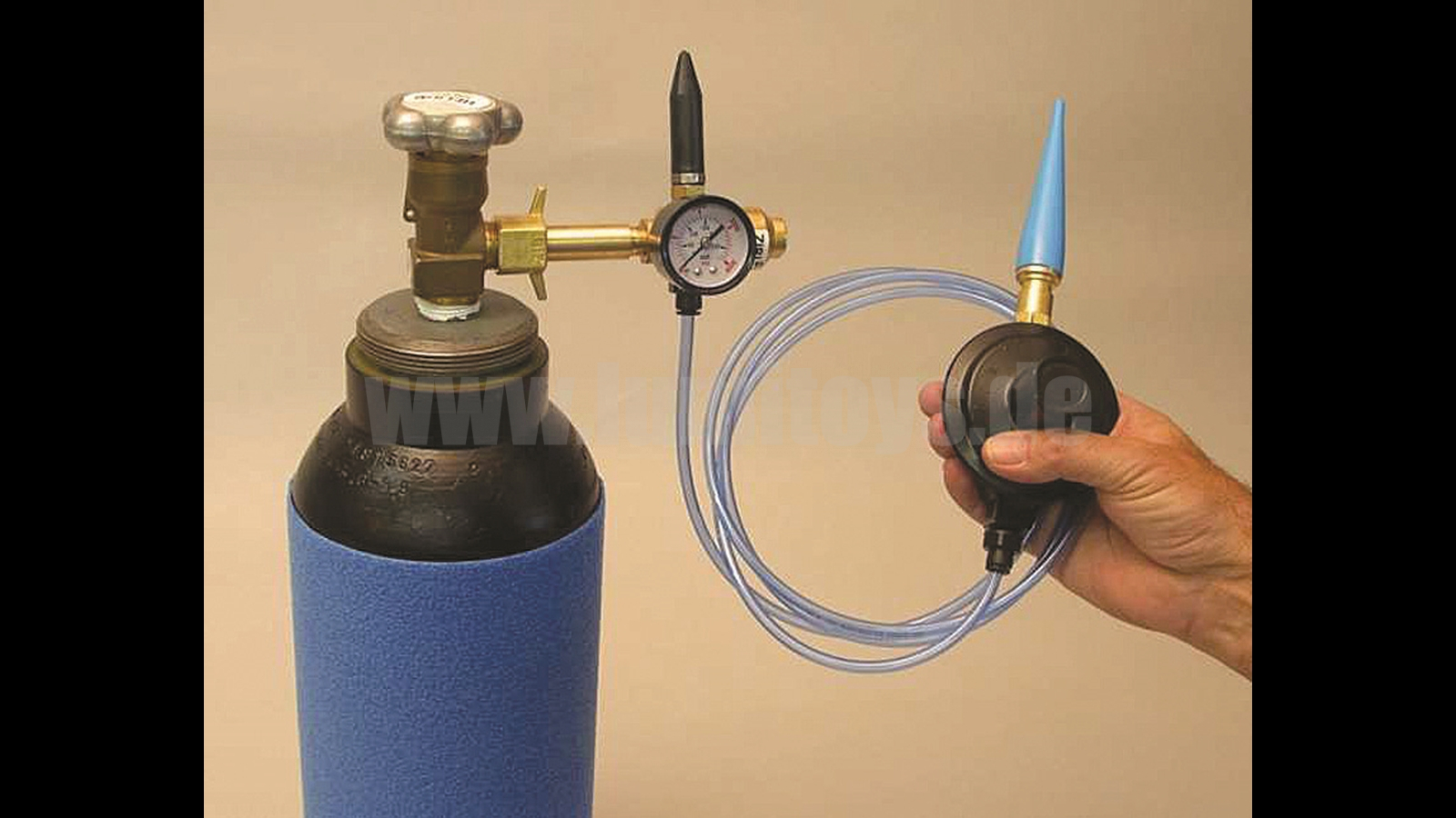 Automatic valve for helium balloons. Stopps when the balloon is perfectly filled.