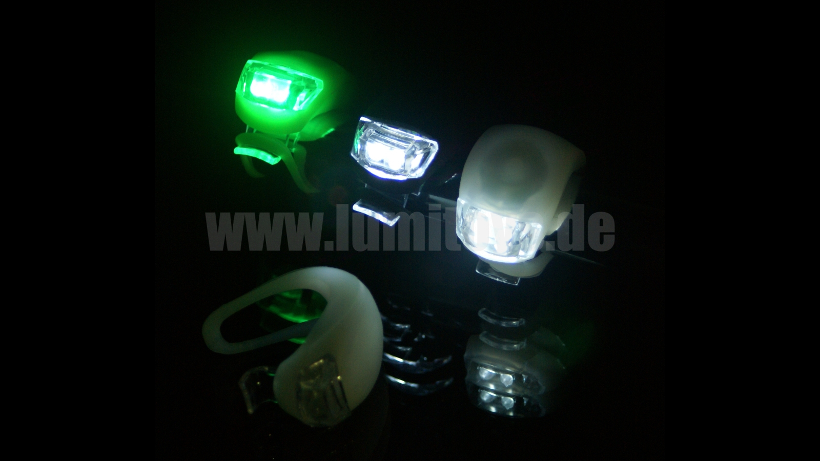 Battery operated LED lamp with flexible rubber band for multi purpose use. Different flashing modes, simple fixing. Various housing and LED colours availabe, additional print is possible.