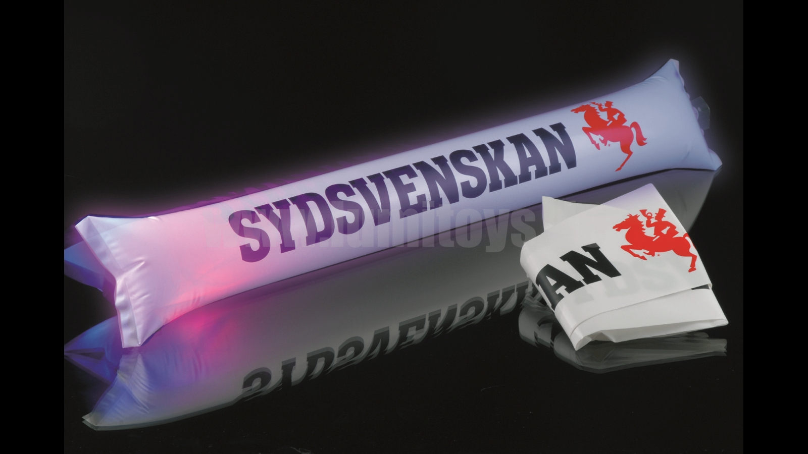 Inflatable clap bars with integrated LED, various colours available, extra print possible on request.