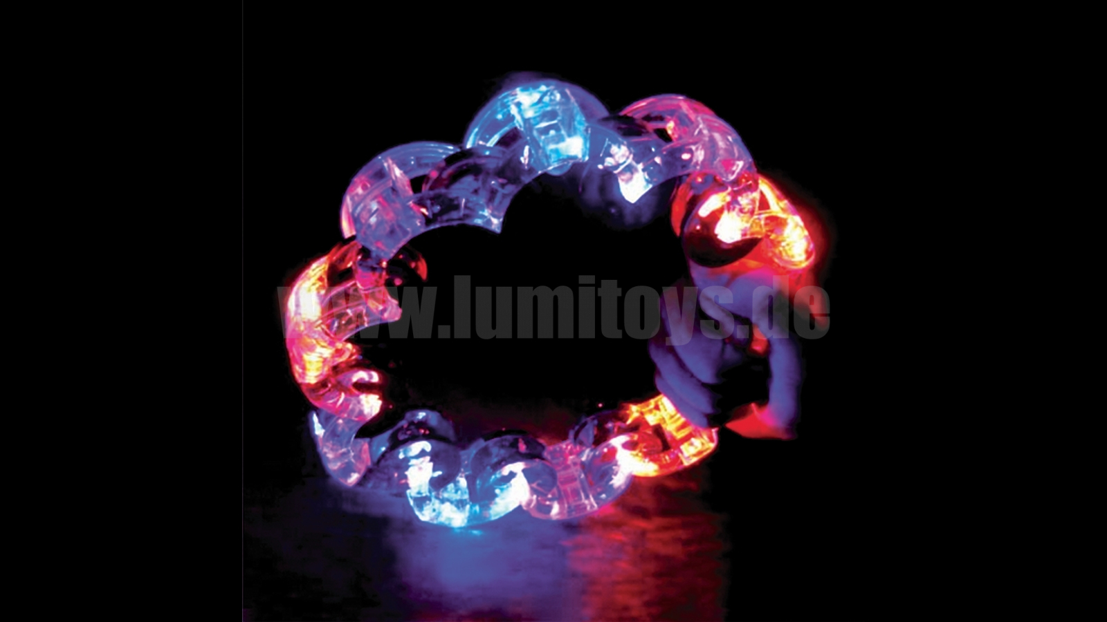 LED tambourine with shock activation and additional on-/off-switch. Delivery inc. 3x 1,5V Mignon batteries (spare: item 1921)