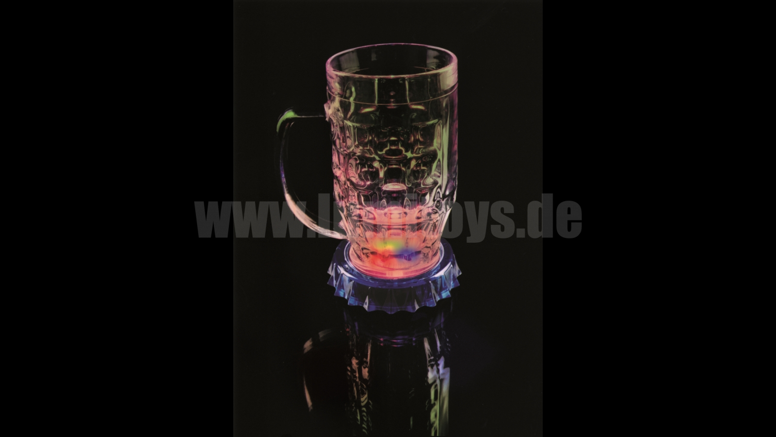 Coaster with centered LEDs, delivery in assorted colours without batteries, 3 x 1,5V Micro (item 1925) required Individual housing- and LED- coulous possible as well as OEM shapes!