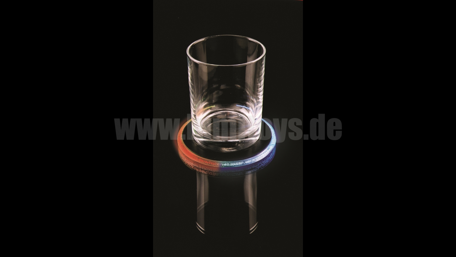 Coaster with centered LEDs, delivery in assorted colours without batteries, 3 x 1,5V Micro (item 1925) required Individual housing- and LED- coulous possible as well as OEM shapes!
