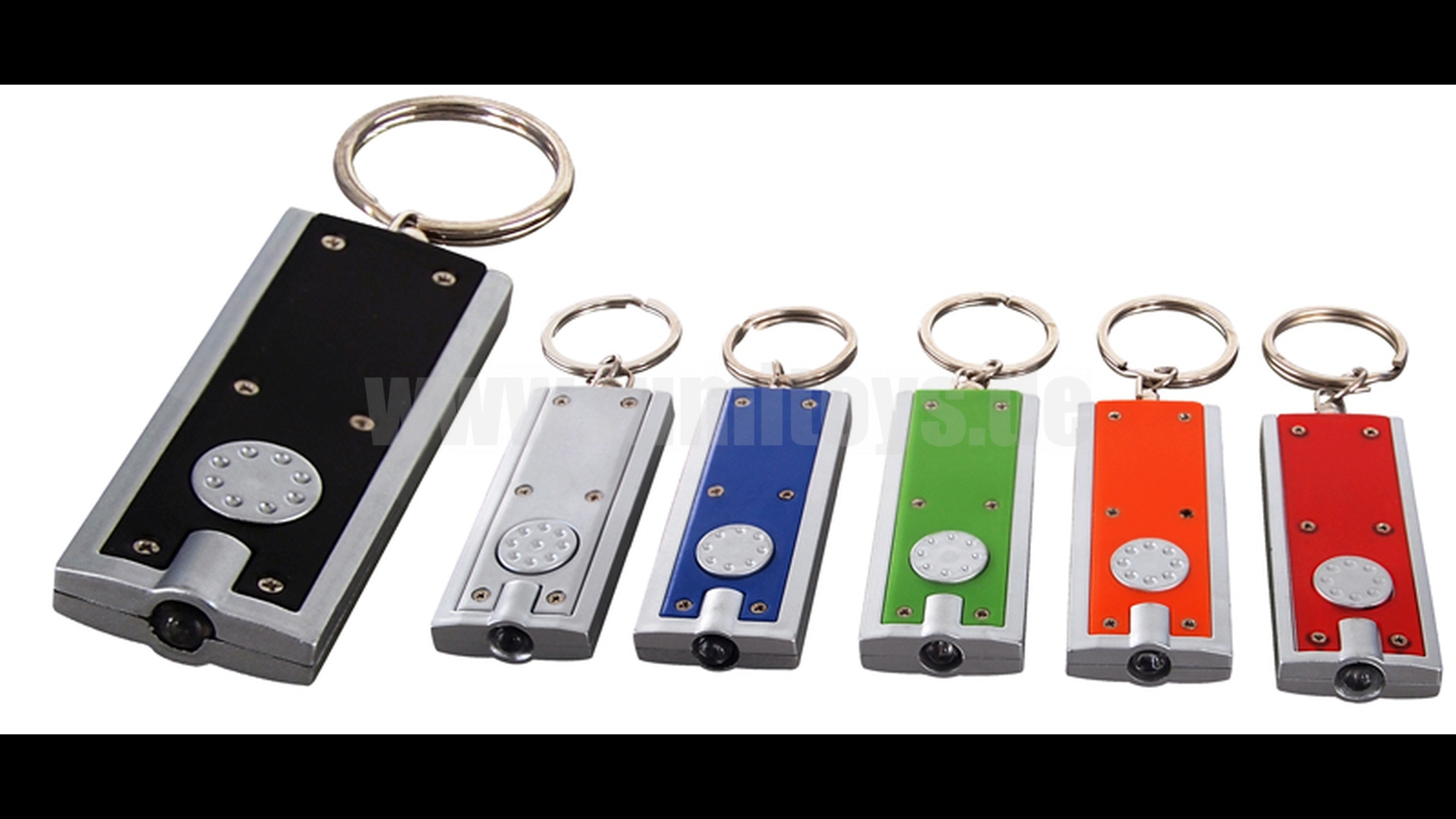 Keychain with high power LED, available in different colours and shapes, extra print possible on request.