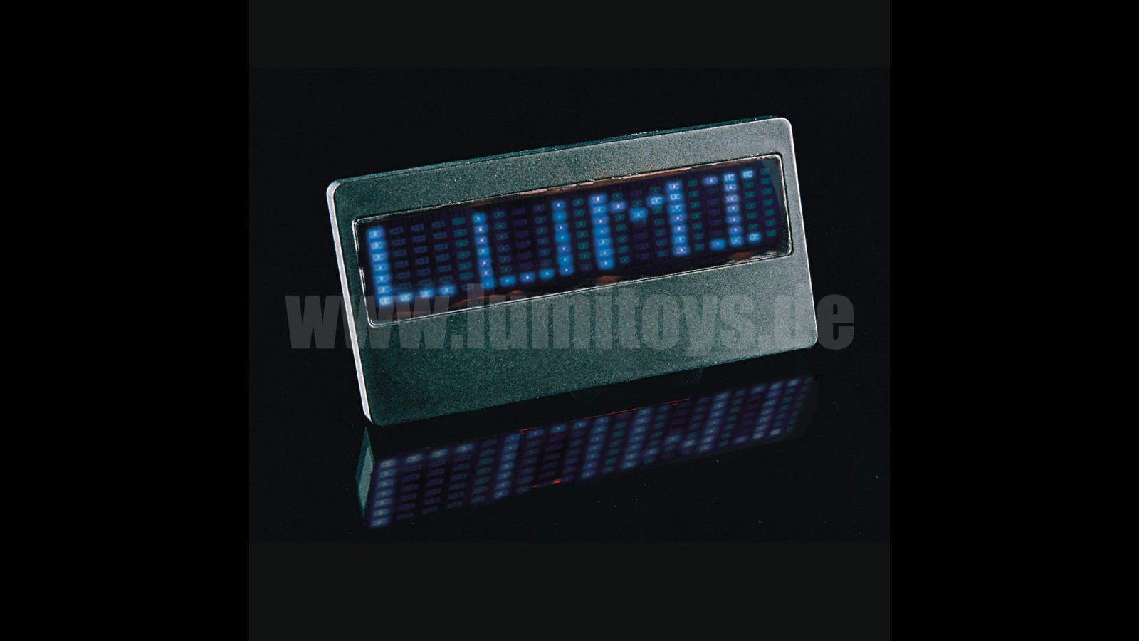 Programmable nameplate with 147 LED mega-display, needle and magnetic clip. Running text for self-programming or pre-programmed, up to 512 symbols. Capacity for 6 messages, brightness and speed adjustable. Delivery inc. 1x CR1220 battery (spare: item 1947), different LED- and body colours possible on request.