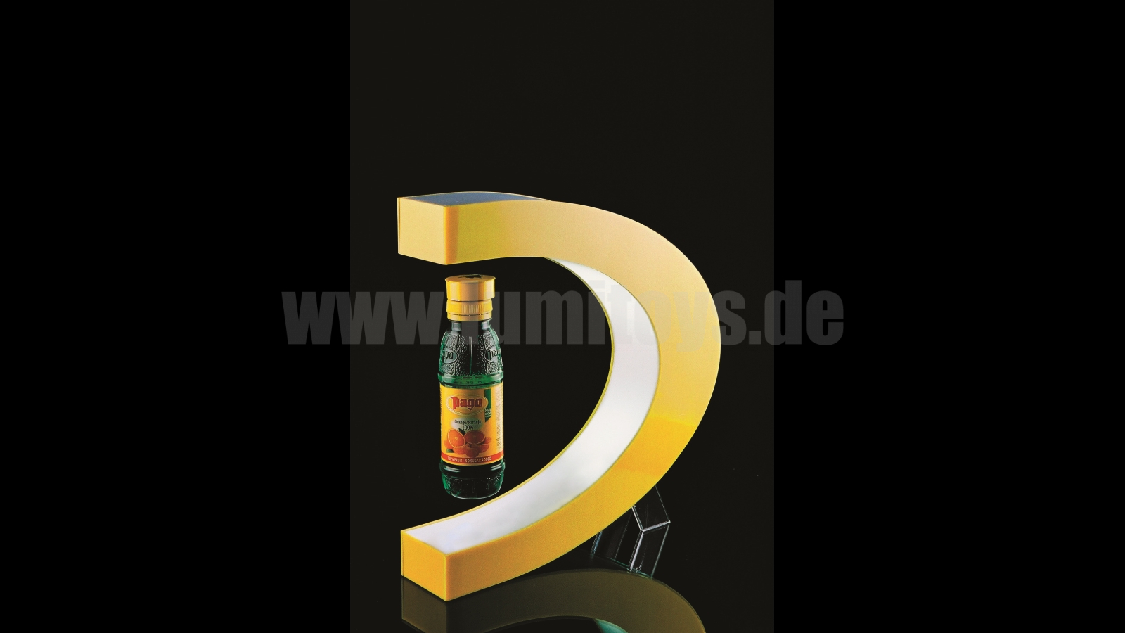 Magnet technology, presented objects "fly" in individually produced displays. Original products may be used on request. Delivery with 220V plug.
