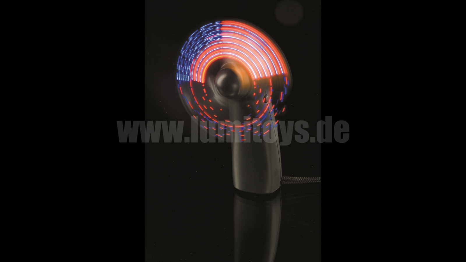 Mini fan with customized, unchangeable programming. Individual logos in full colour and size, different LED- and housing colours possible as well as extra print. Delivery inc. test batteries.