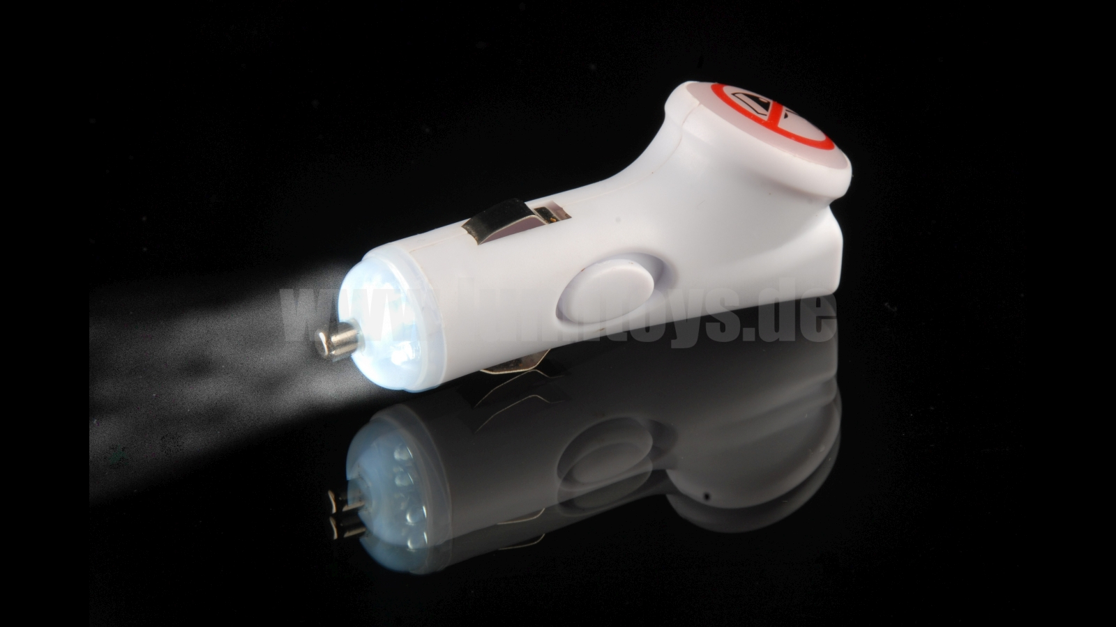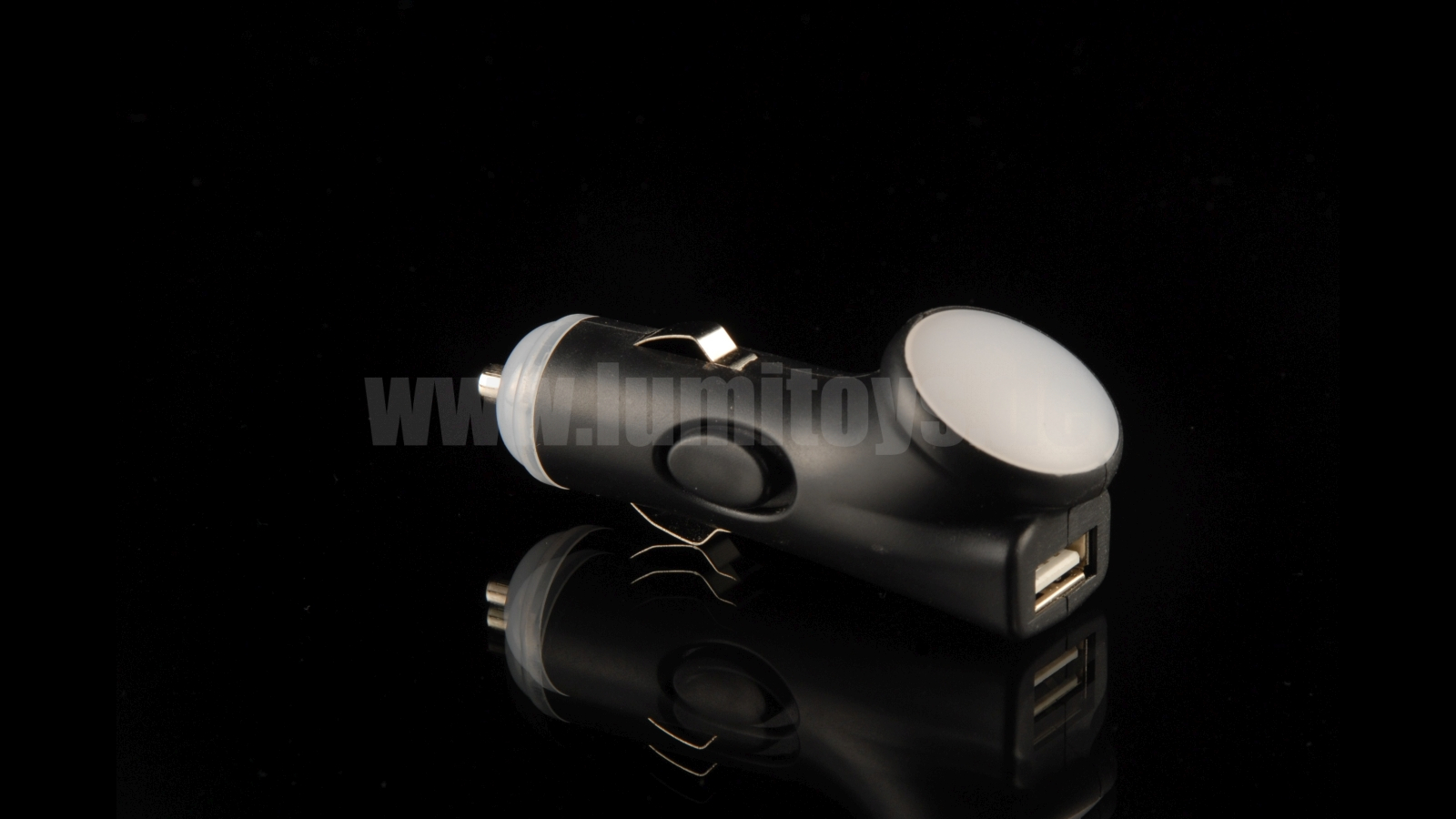 USB-charger with additional safety torch (rechargeable) and illuminated, printable advertising space, charging function for USB and torch via cigarrette lighter. Advertising space starts glowing when charging, torch with on-/off-switch. Available in different colours. NEW: Also available without lamp and with illuminated acrylic plate for individual engraving!