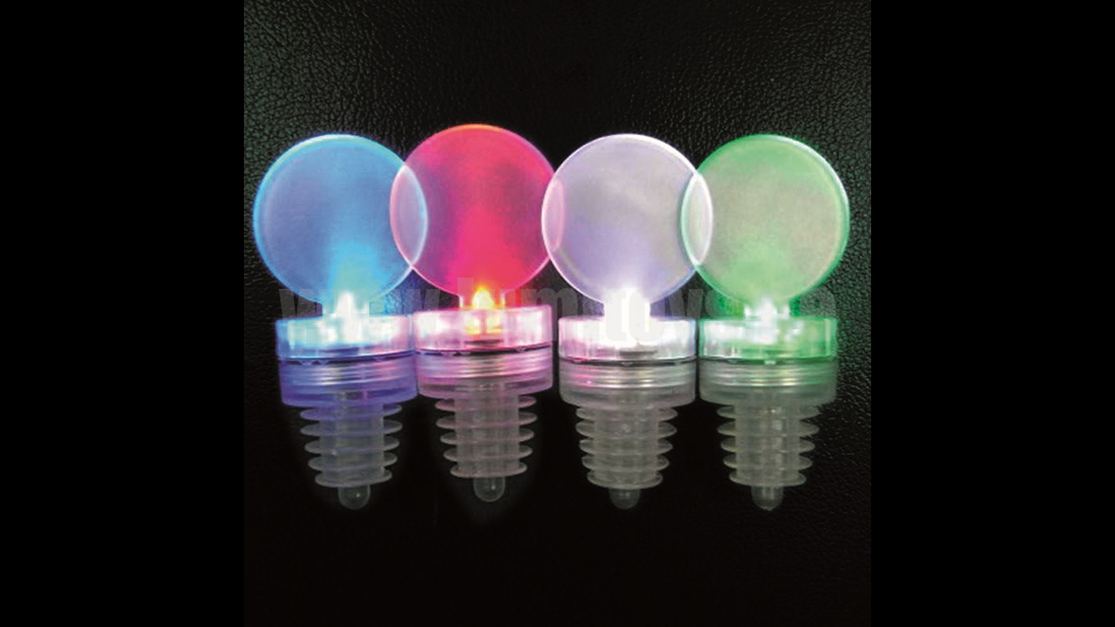 Blinkender Flaschenstopfen, auf Wunsch mit Sound-Sensor. Individuelles Design und diverse LED-Farben erhältlich, zusätzliche Bedruckung möglich.