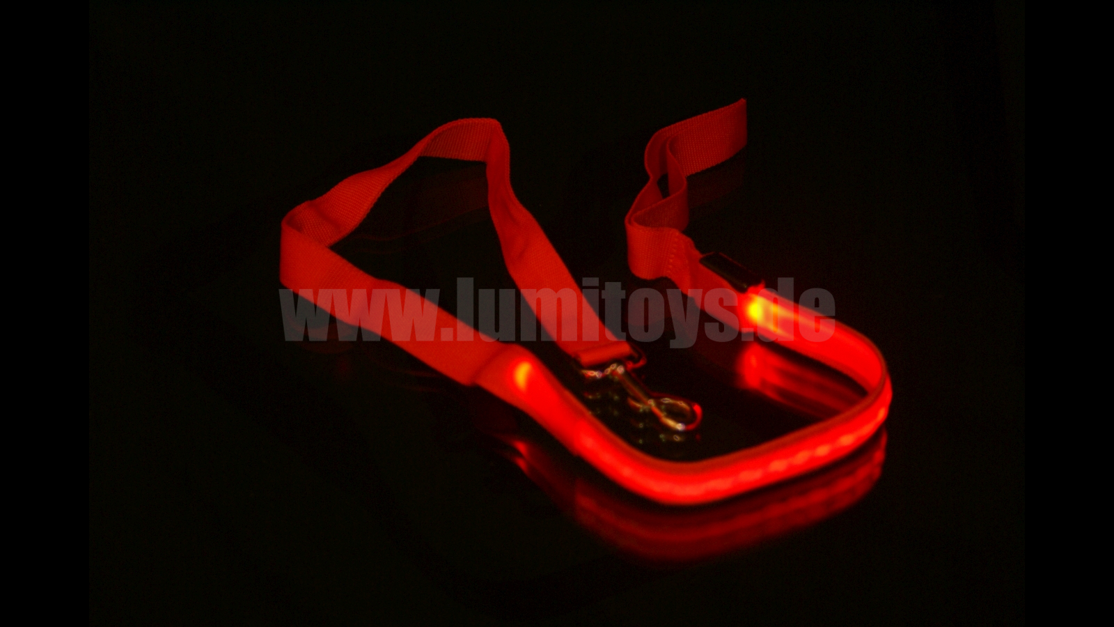Hundeleine mit LEDs und zusätzlichem Reflektorstreifen, drei Blinkfunktionen sind auf Knopfdruck anwählbar. Stabiler Metallkarabiner und Handschlaufe für sicheren Griff. Wahlweise mit austauschbaren Batterien oder über USB aufladbar. Weitere Modelle auf Anfrage.