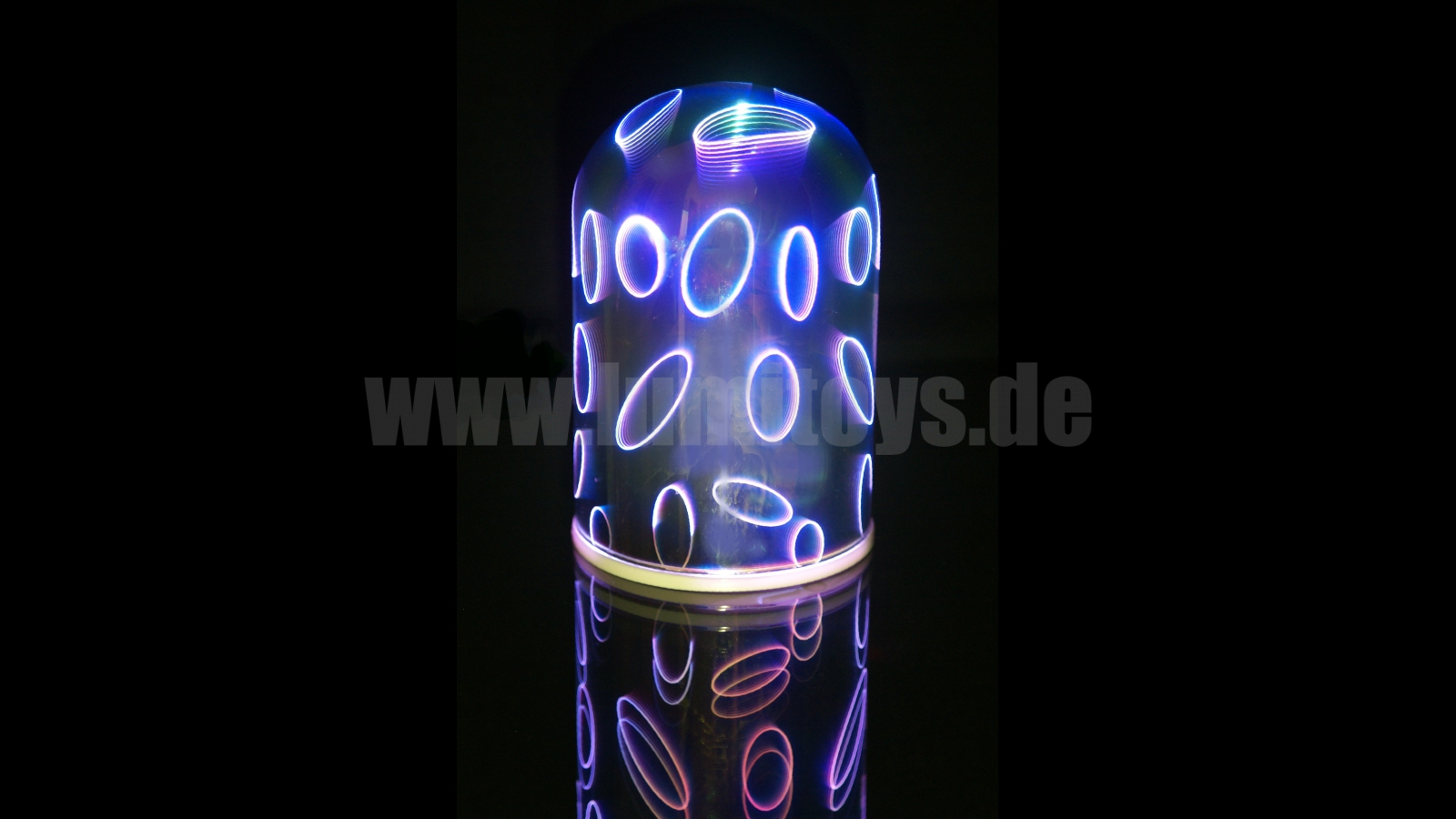 Nacht- und Dekolicht mit Infinity-Effekt und Farbwechsel-LED, individuelle Gravur umsetzbar. Andere LED-Farben sind auf Wunsch ebenfalls erhältlich.