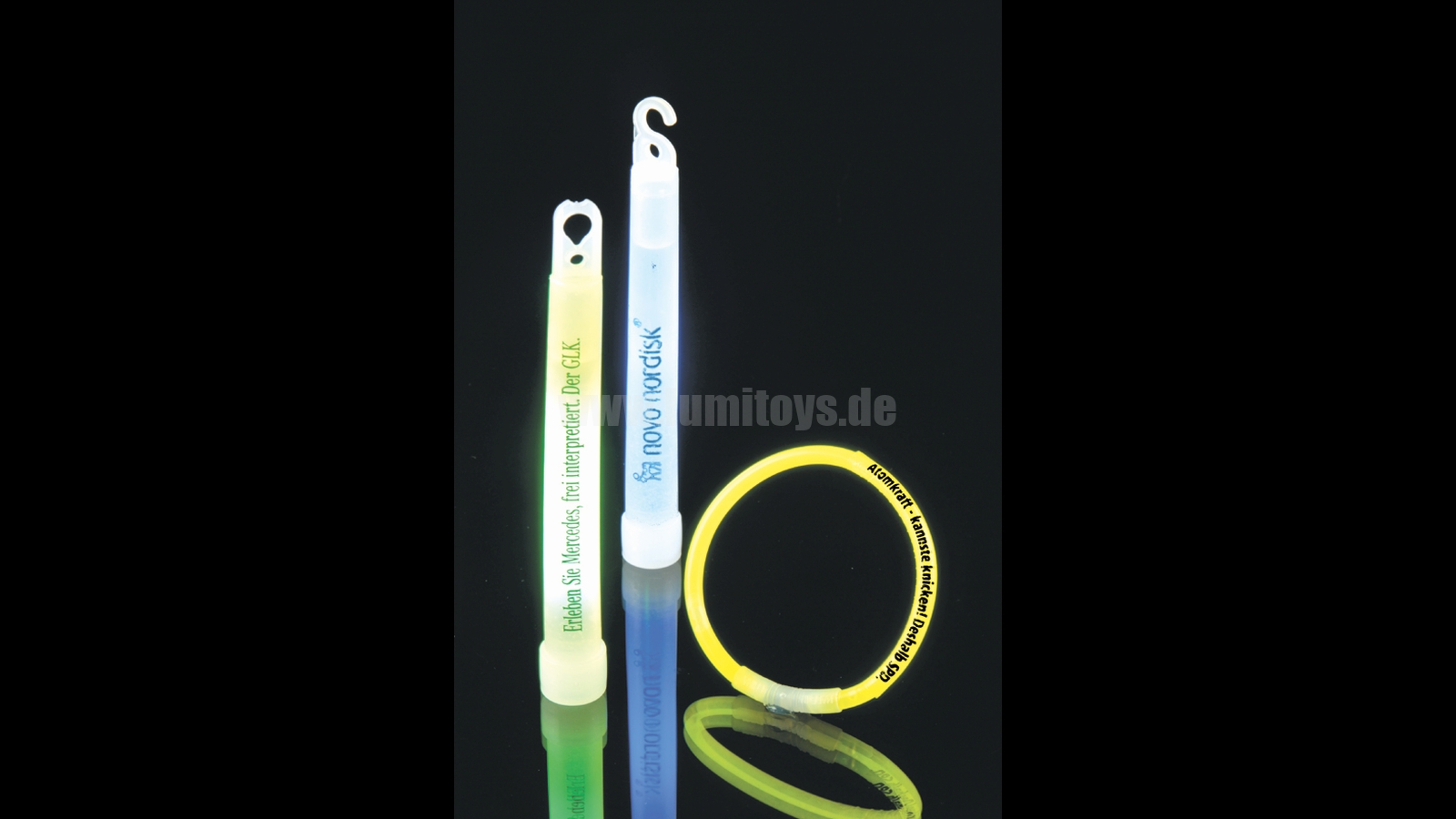 Knicklicht zum einmaligen Gebrauch, Leuchtdauer ca. 8-10 Std., H = ca. 15cm Eine Individualisierung unserer „Glow in the dark“ – Artikel ist möglich per Druck, alternativ auch per Aufkleber.