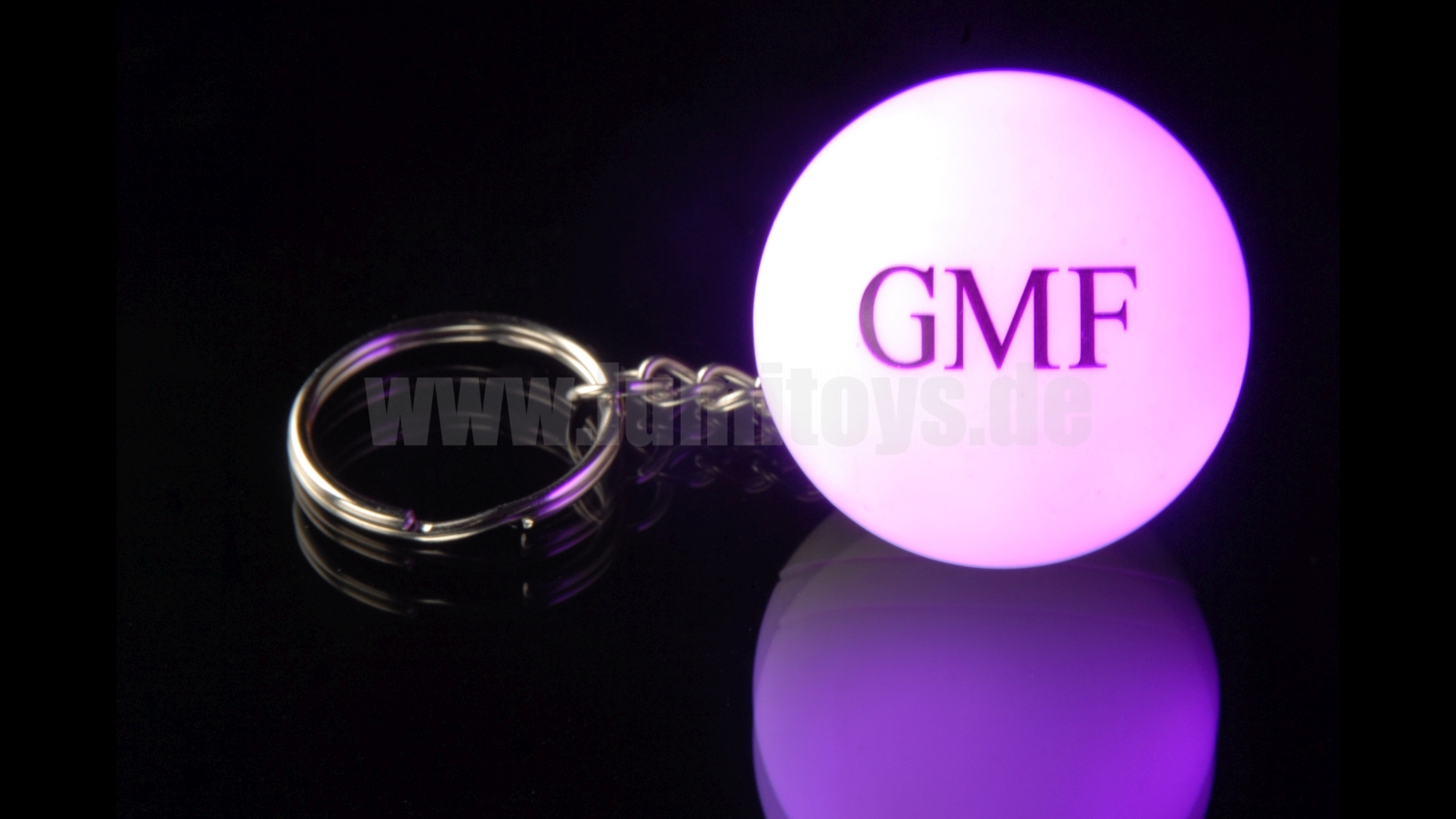 Kugelförmiger Schlüsselanhänger mit Rainbow-Effekt, einzelne Farben und individuelle Formen auf Wunsch möglich.