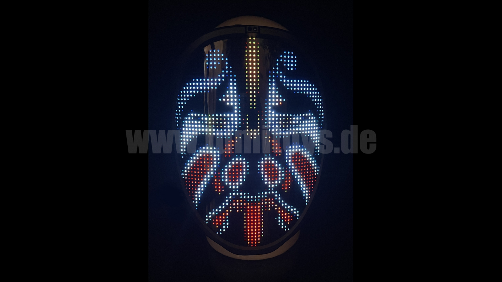 Leuchtende Maske, über Bluetooth/App individuell programmierbar. Viele Features, z.B. Textprogrammierung mit unterschiedlichen Farben/Hintergründen, Datenbank mit großer Auswahl an vorgefertigten Animationen und Bildern, DIY-Funktion usw. Bequemer Sitz der Maske durch per Klett verstellbares, breites Gummiband sowie flexiblem Innenteil. Über USB aufladbar.