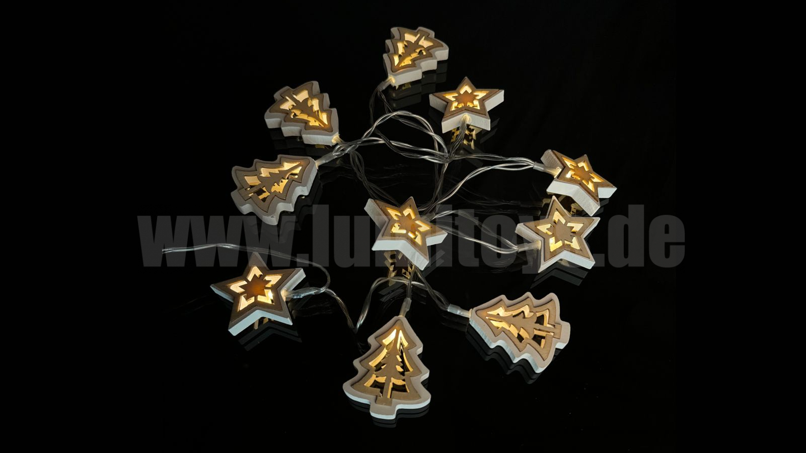 Lichterketten in verschiedensten Ausführungen, z.B. aus Holz, Kunststoff, Papier, usw. Viele Standardformen erhältlich, ebenfalls können individuelle Motive umgesetzt werden. Verschiedene Längen und LED-Farben sind möglich, für Batteriebetrieb, mit USB-Anschluss oder Netzstecker. Für den Outdoorbereich ebenfalls mit Solar erhältlich.