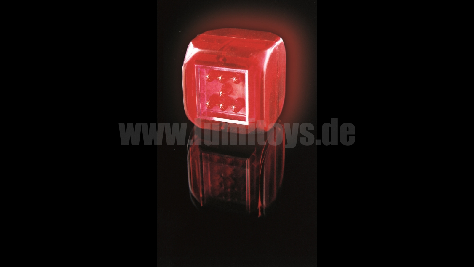 Würfelt per Zufallsgenerator, Schlagaktivierung, Lieferung erfolgt farblich sortiert incl. 3x AG13 Batterien (Ersatzbatterie: Art.Nr. 1945)
