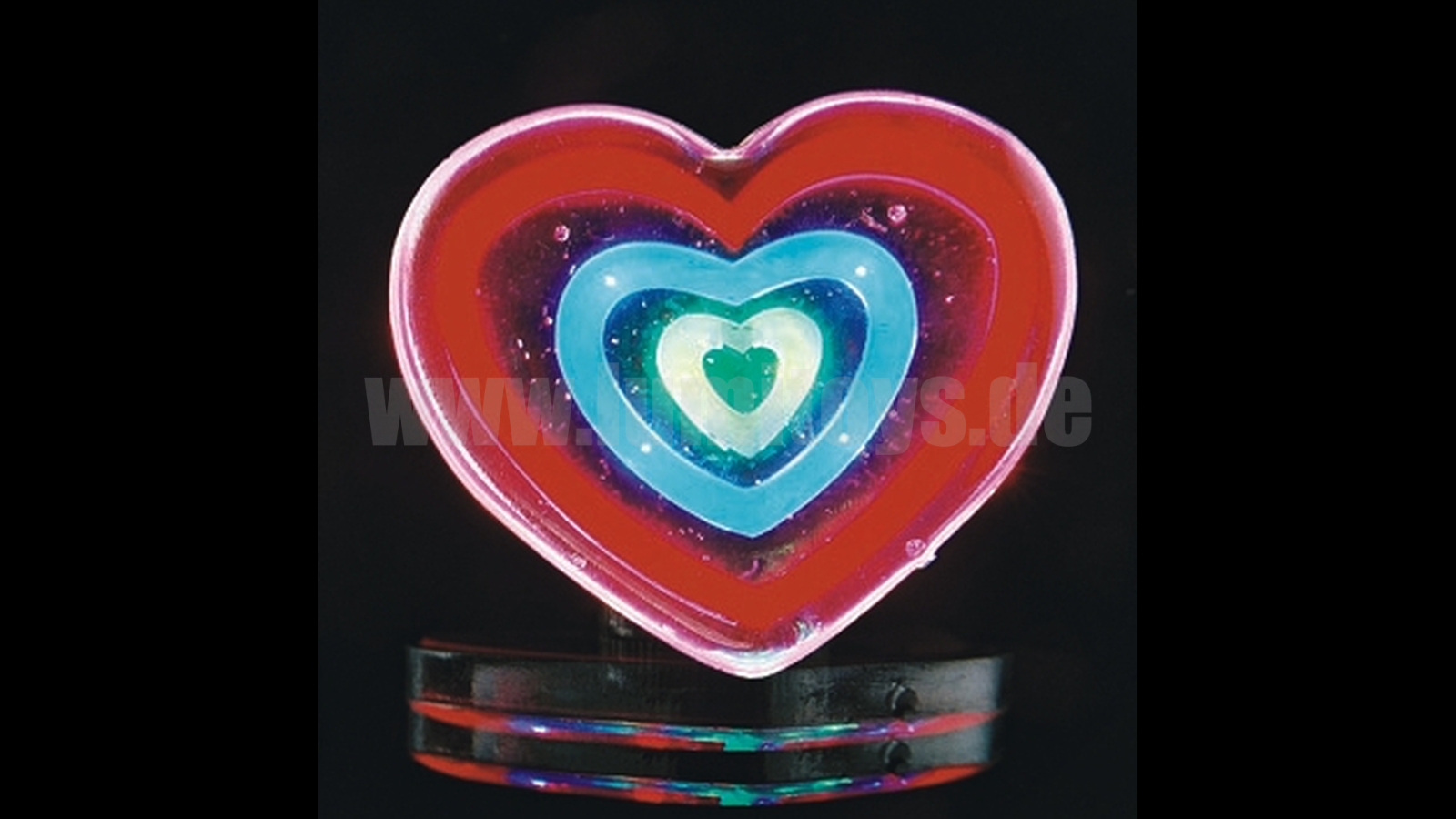 Pulsierender Blinkeffekt der einzelnen Farbsegmente, durch Drehen einzuschalten, mit Additional (Art. 5524) auch als Kette verwendbar. Lieferung erfolgt incl. 2x CR1220 Batterien (Ersatzbatterie: Art.Nr. 1947)