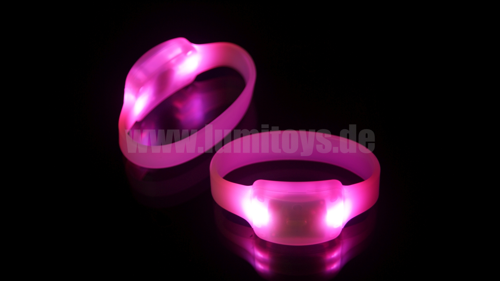 Funkgesteuertes Armband aus Silikon mit RGB-LEDs, Individualisierung möglich. Funktioniert ausschließlich in Verbindung mit zugehöriger Sendereinheit (Art.Nr. 3501), über die verschiedene Blinkfarben und -modi darstellbar sind.
