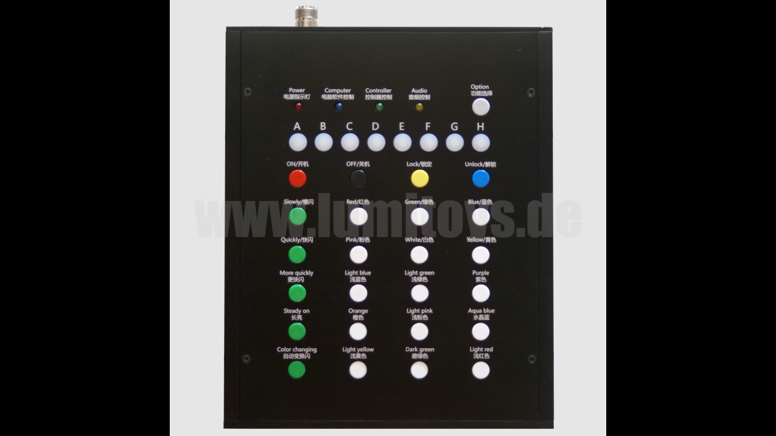 Sendereinheit für Funkartikel, erhältlich in verschiedenen Ausführungen (Anzahl der Kanäle, Reichweite, Anzahl der Funktionen, Farbmenge, Steuerung u.ä.). Auf Wunsch PC-kompatibel.