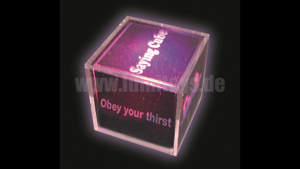 Lichtwürfel aus Hartplastik für individuelle Werbebotschaften, mit oder ohne Metallic-Effekt. Leuchtfarben und Form frei gestaltbar.