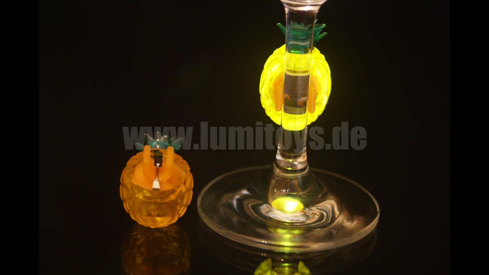 Dekorativer LED-Clipper für Stielgläser, verschiedene Standardmotive erhältlich. Individuelle Formen sowie eigene Bedruckung sind ebenfalls umsetzbar.